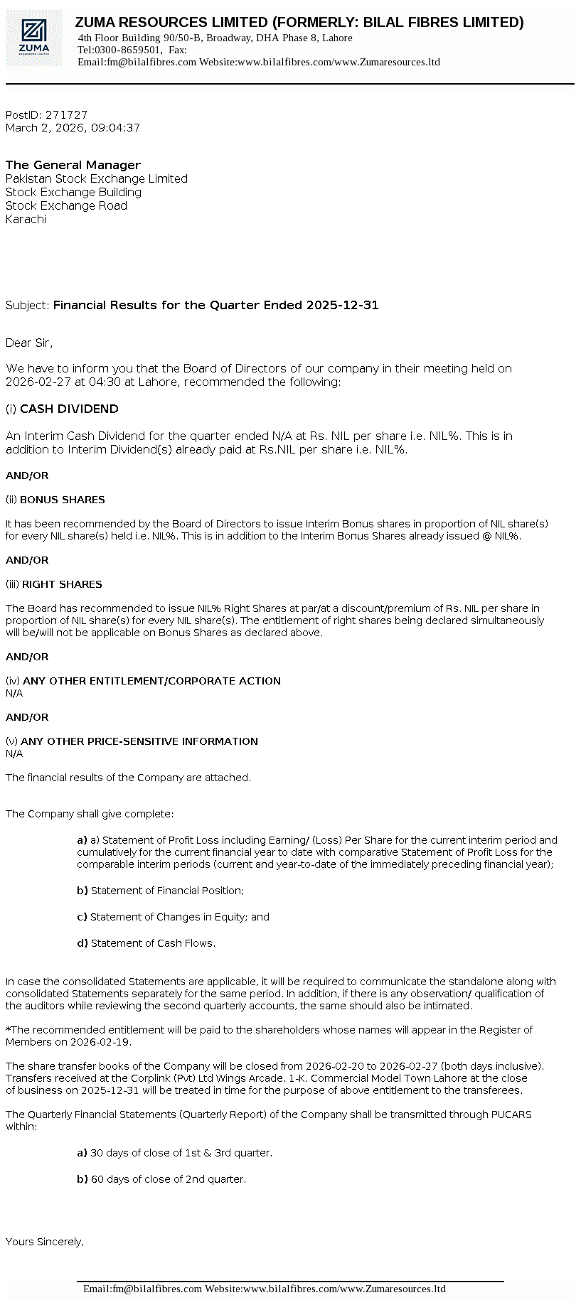 | Period | Revenue | Profit After Tax | EPS |